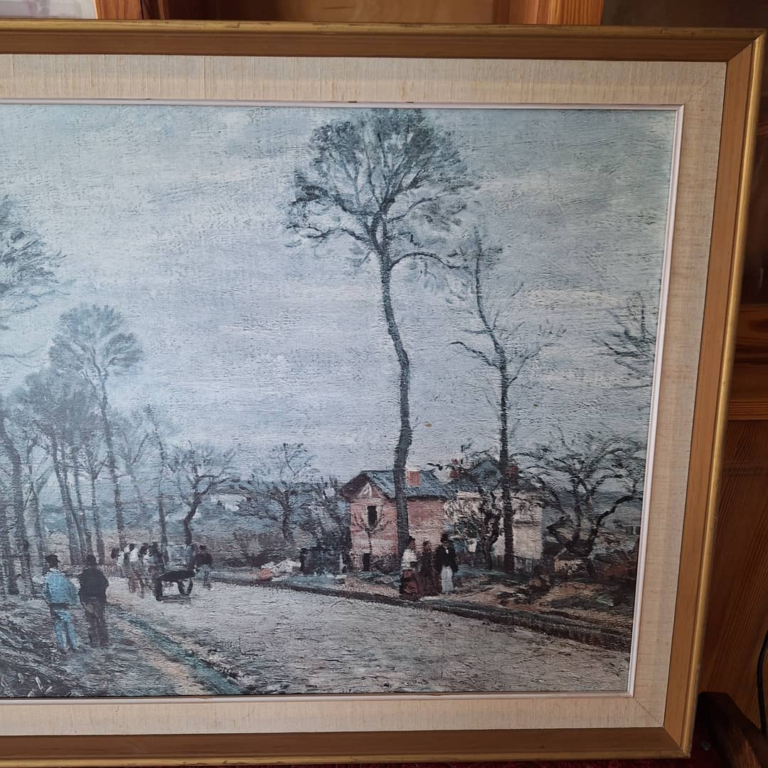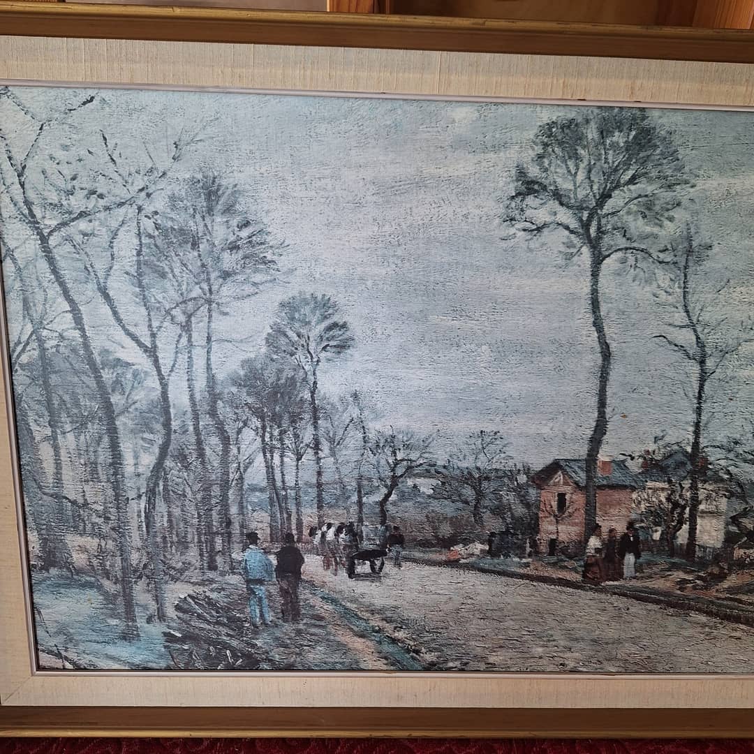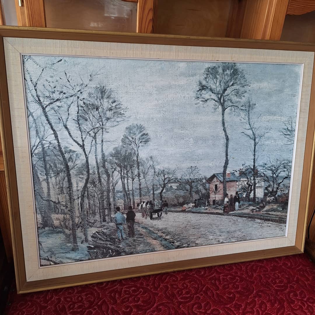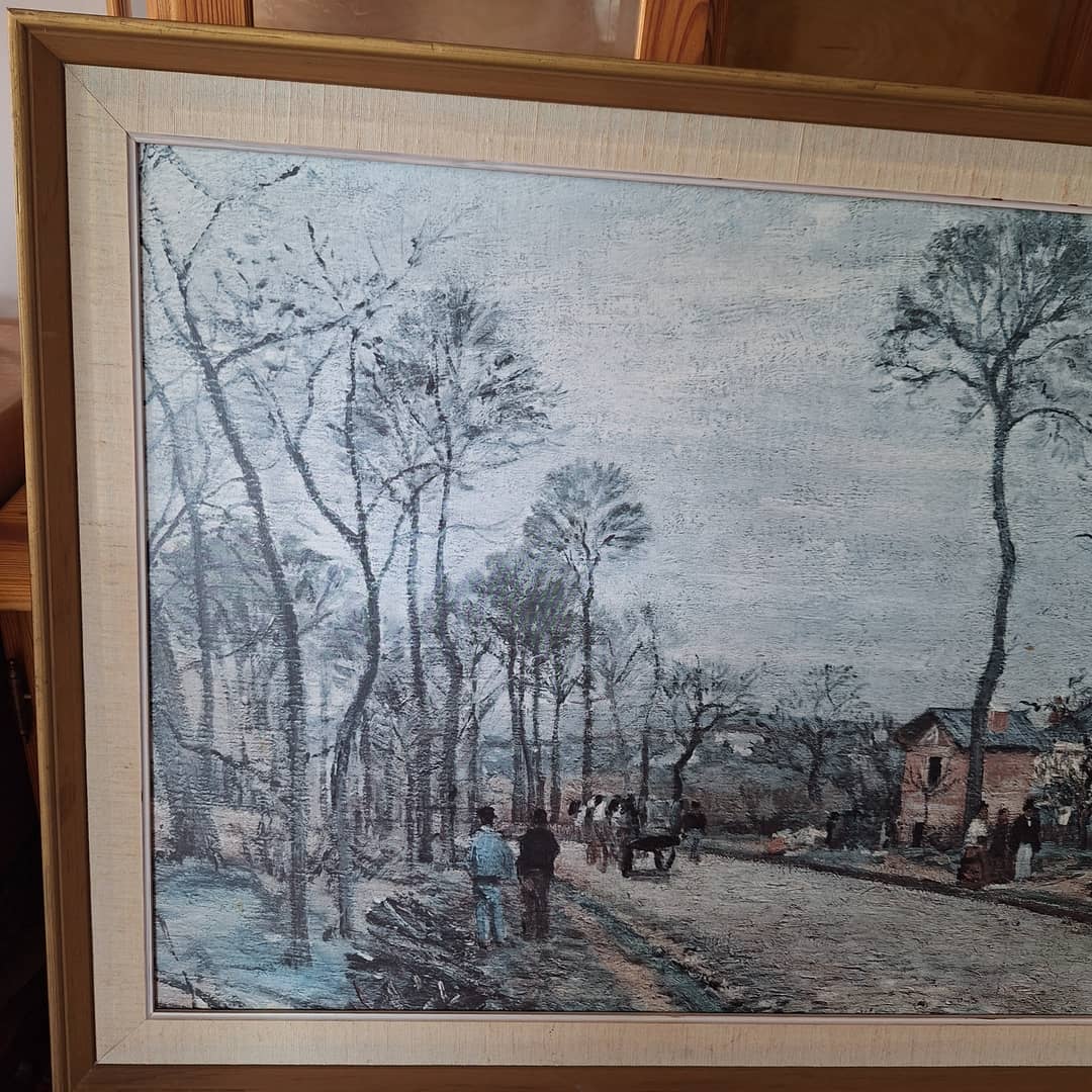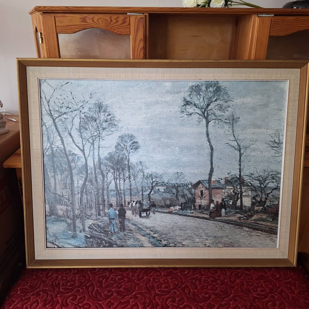 Obraz, druk na płótnie, reprodukcja francuskiego malarza Camillea Pissarro "Droga z Louveciennes. Wielkość 80/60 cm. Możliwy dowóz lub wysyłka. Cena 70 zł.