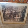Obraz grafika pejzaż z drzewami, wielkość 67/56 cm. Możliwy dowóz. Cena 75 zł.