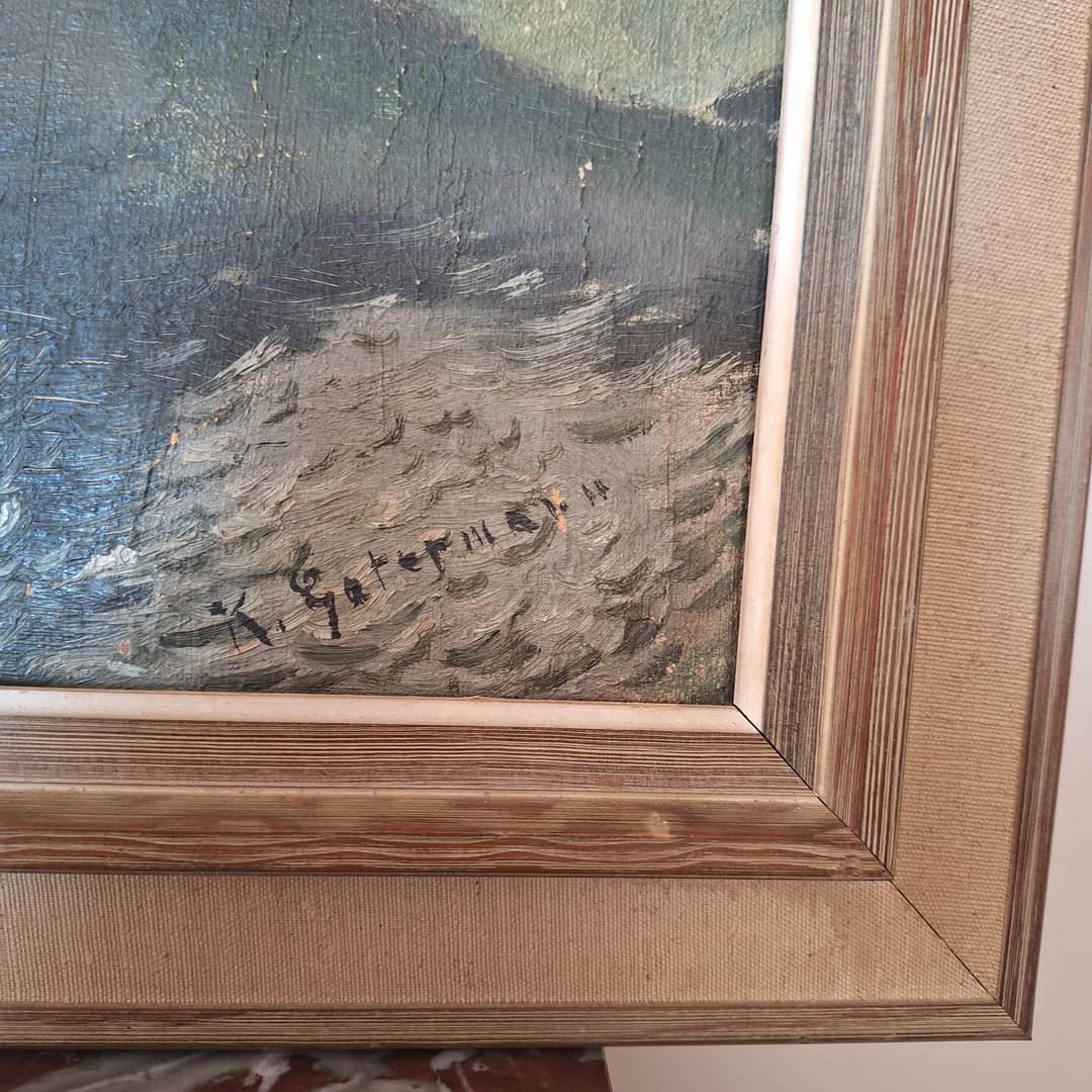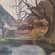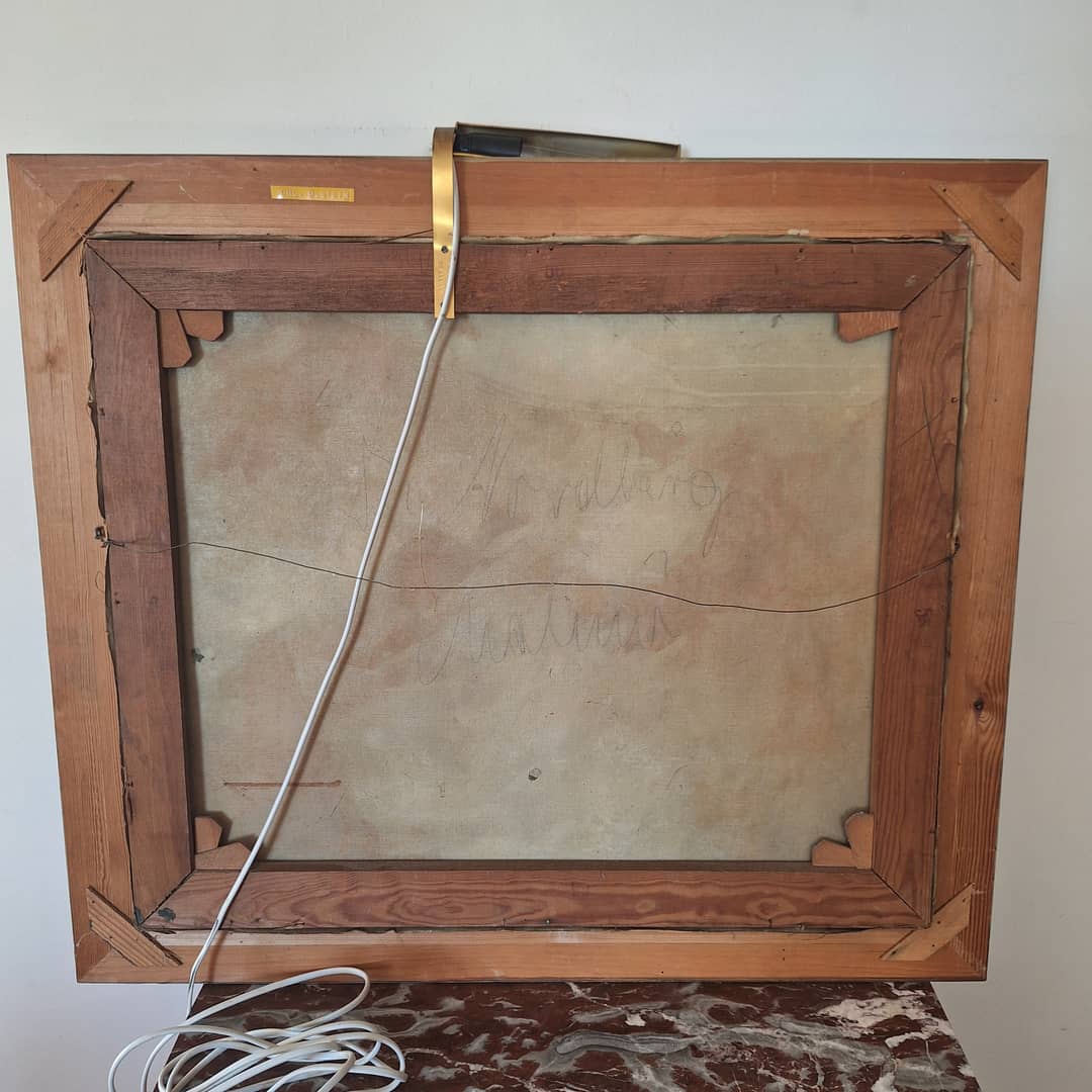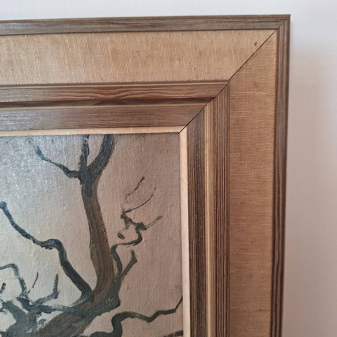 Obraz olejny malowany na płótnie, wiejski pejzaż, dom kryty strzechą, podświetlany. Wielkość 78/68 cm. Możliwy dowóz lub wysyłka. Cena 80 zł.