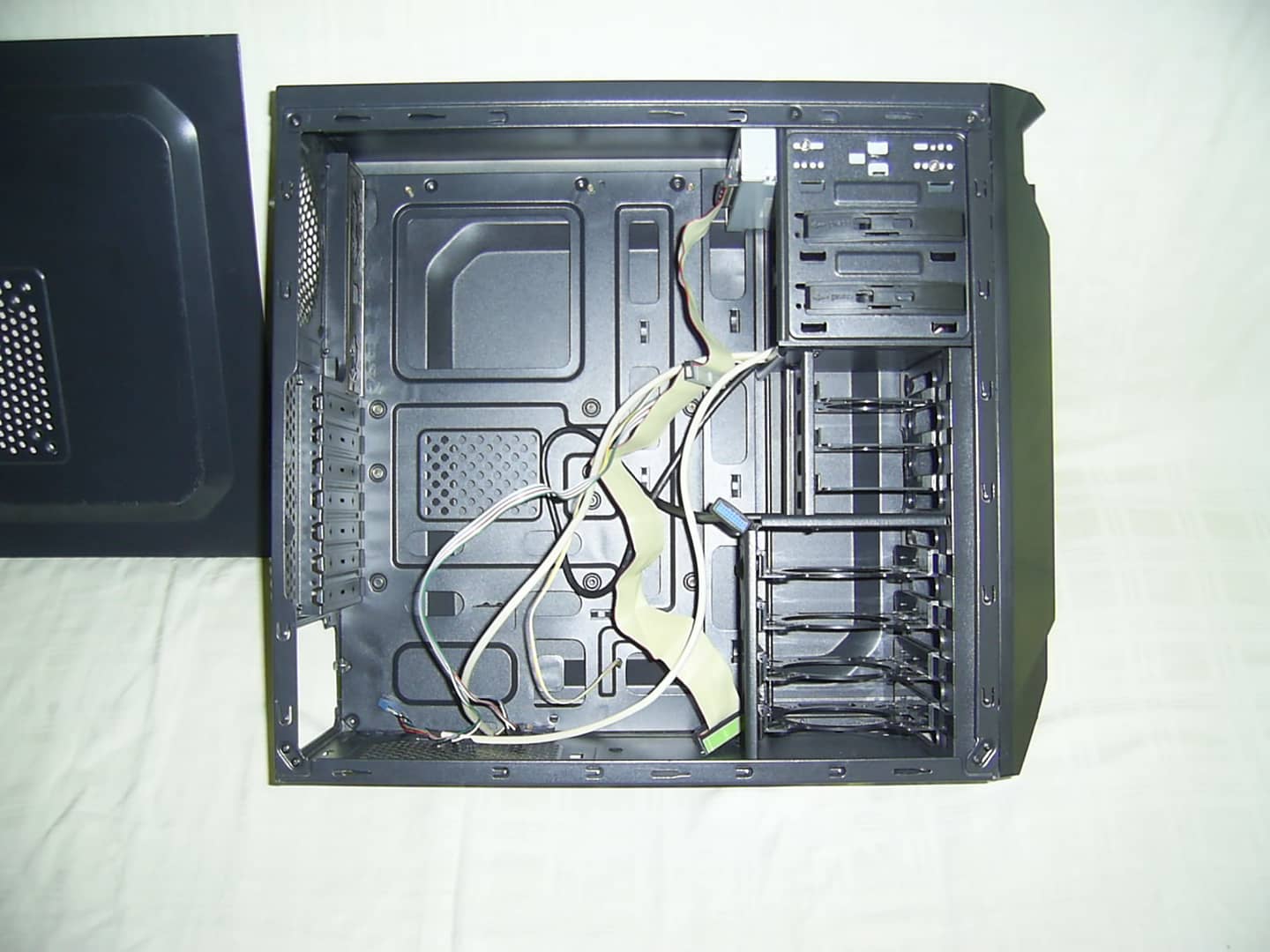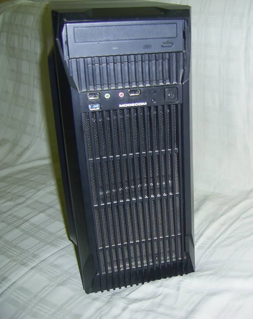 Sprzedam obudowę komputerową Modecom Triks - pozostałość po komputerze stacjonarnym. Obudowa nosi ślady użytkowania w postaci rys, rysek, otarć, wgniotek, wgnieceń itp. W obudowie można zamontować 1 x napęd optyczny 5,25", 3 x dysk hdd/ssd 2,5", 4 x dysk hdd 3,5". Jest również adapter który pozwala we wnęce 3,25" zamontować czytnik kart pamięci lub dysk ssd. Możliwość założenia 4 wentylatorów 1 x tył 120 mm, 2 x przód 100 mm, 1 x boczna ścianka 120/140 mm.W komplecie jako zaślepka napęd cd-rom Hp LTN-489S wraz z taśmą do podłączania dysków hdd/napędów optycznych na złącze ata (IDE). Brak nóżek oraz dolnego filtra mocowanego pod zasilaczem. Uszkodzone porty na przednim panelu. Wysokość 42,5 cm. Szerokość 18 cm. Głębokość 47 cm. 20 zł.
