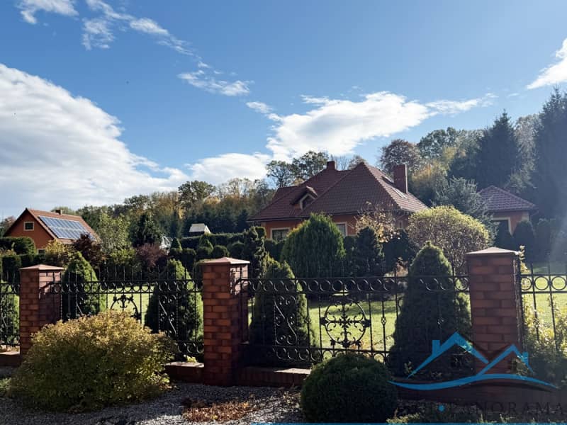 Posesja w całości ogrodzona, przy wjeździe automatyczna brama. Podjazd jak i ścieżki wokół budynku wyłożone kostką granitową. Dużym atutem nieruchomości jest piękny, zagospodarowany ogród z licznymi nasadzeniami.