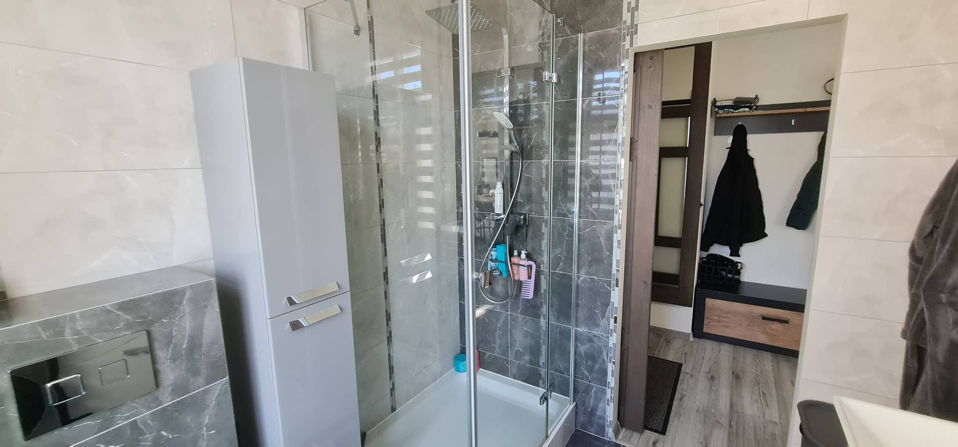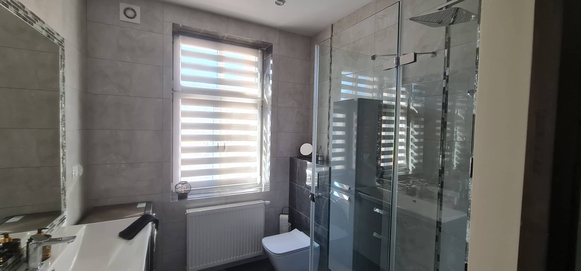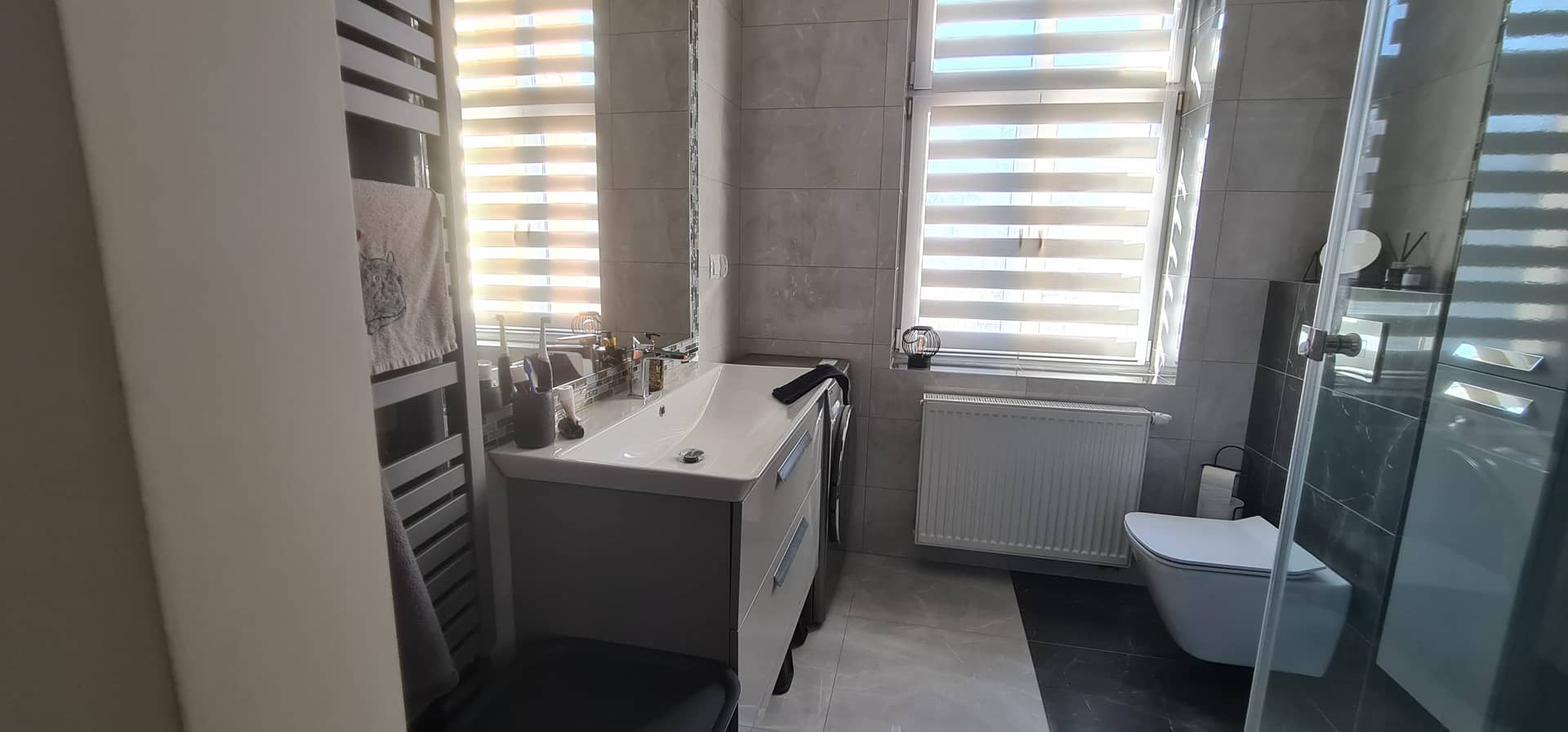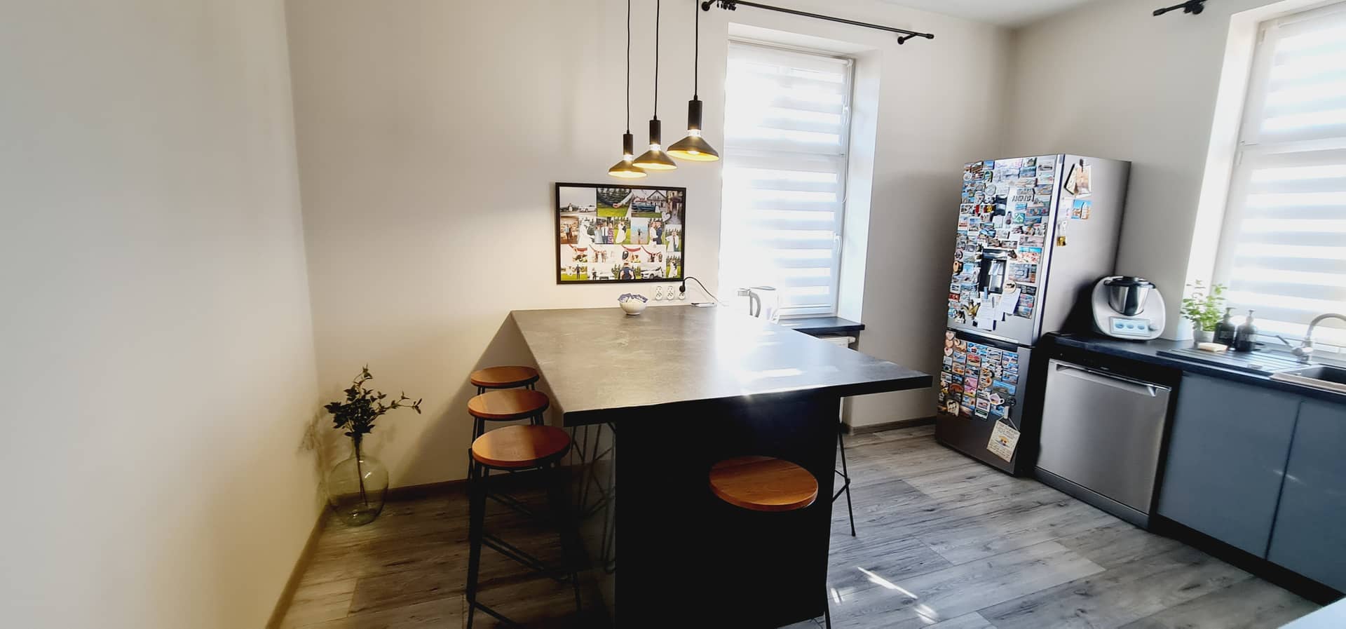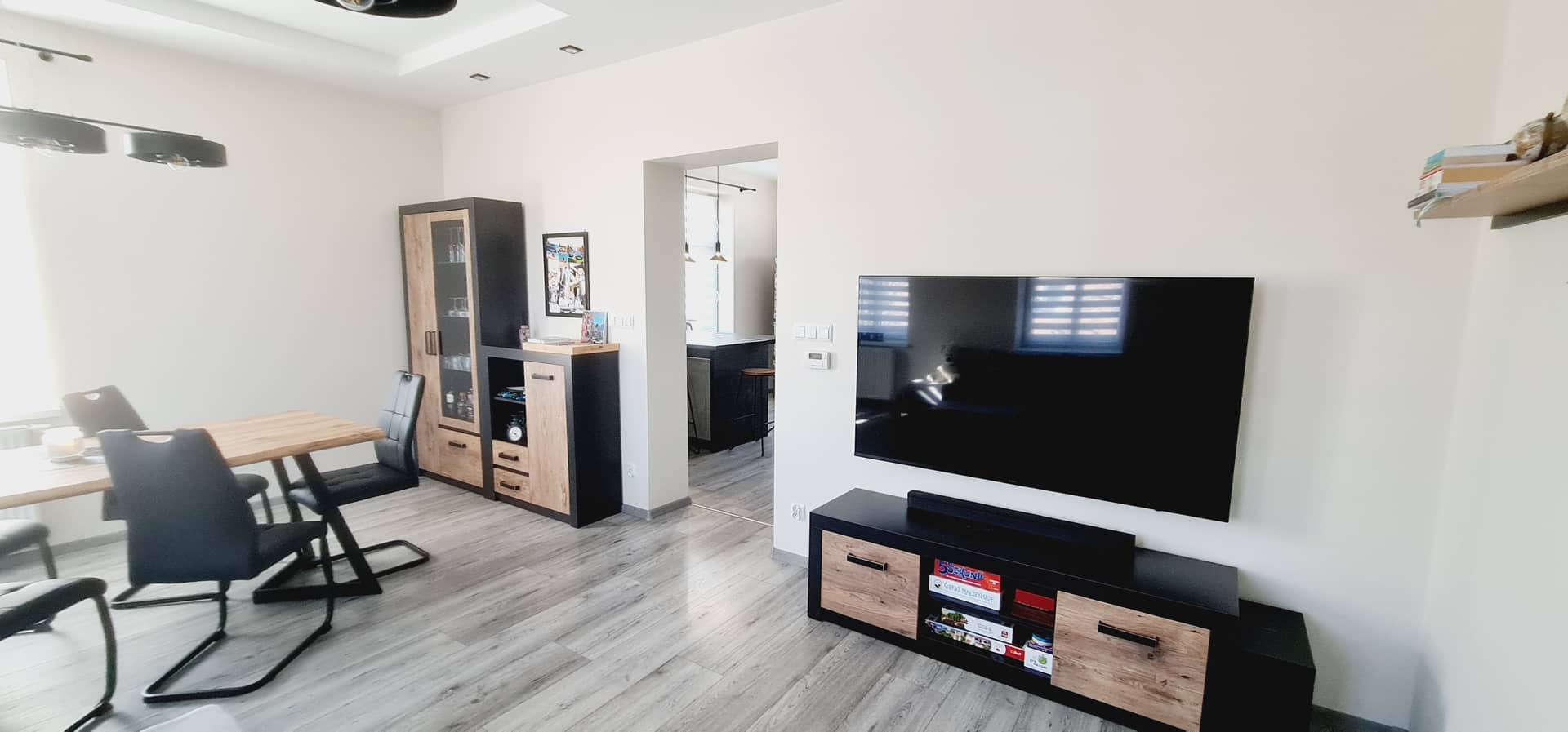 Lokal został wykończony z dbałością o detale przy użyciu materiałów wysokiej jakości, dzięki czemu wnętrze jest estetyczne, funkcjonalne i gotowe do zamieszkania. Na podłogach znajdują się płytki oraz panele, a okna PCV wyposażone są w eleganckie rolety dzień–noc, które zapewniają komfort oraz prywatność.