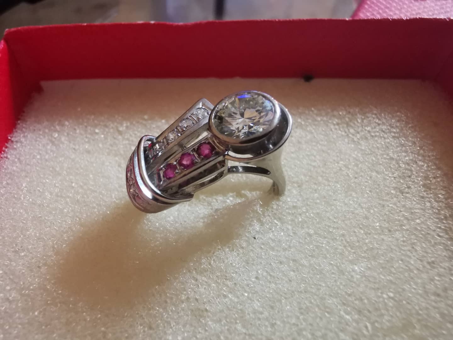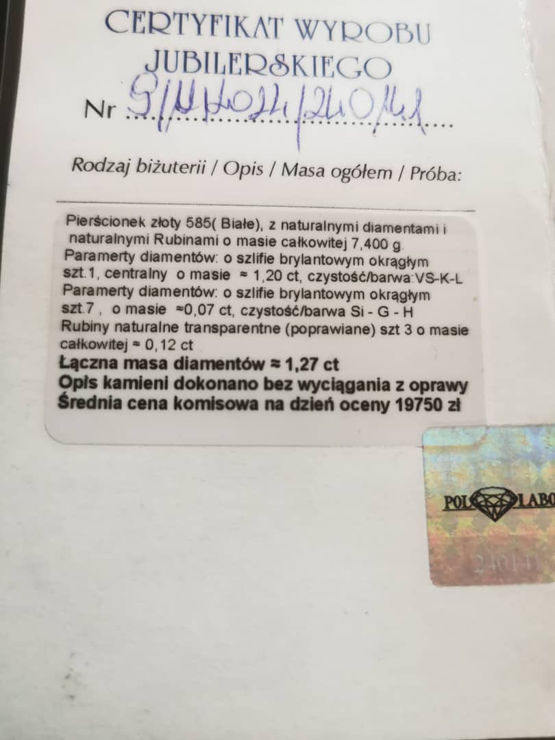 Sprzedałem za mniej niż połowa ceny z Certyfikatu Złoty pierścionek Białe Złoto próba 585 z dużym centralnym Diamentem 1,2 ct do pierścionka jest certyfikat z wycena pierścionek art deco z naturalnym kamieniem cena około 9 tys