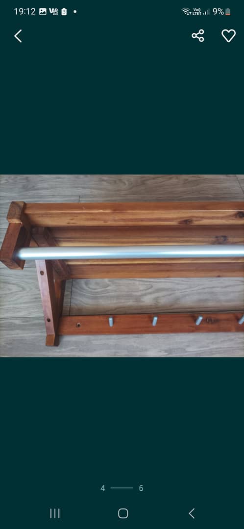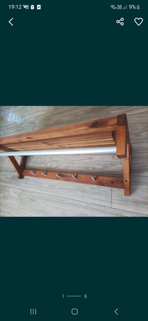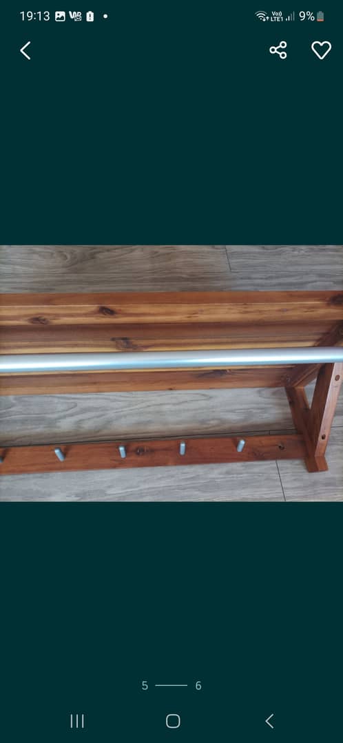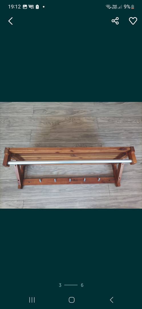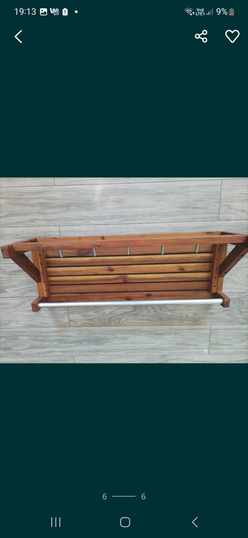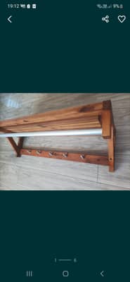 Drewniana półka do przedpokoju w bardzo dobrym stanie, bez uszkodzeń. Wymiary długość 82 cm , szerokość 31 cm, wysokość 24,5 cm . Możliwy dowóz. Cena 65 zł.