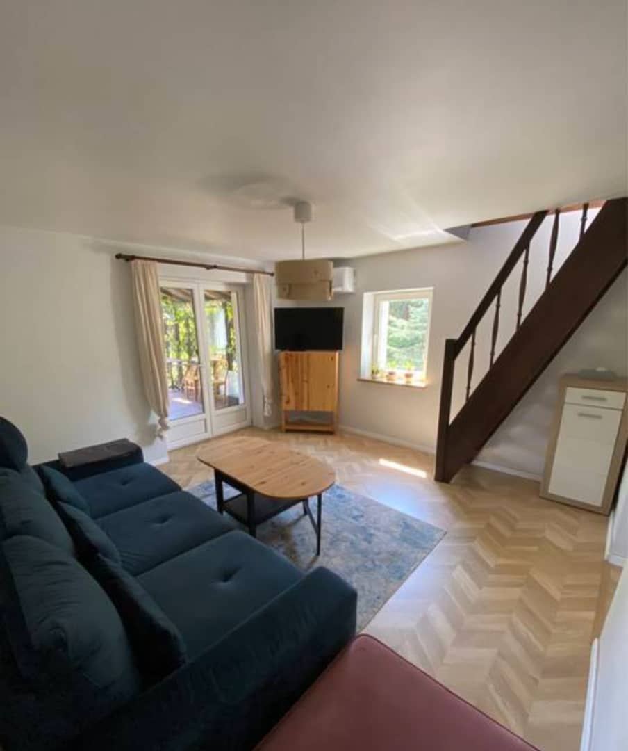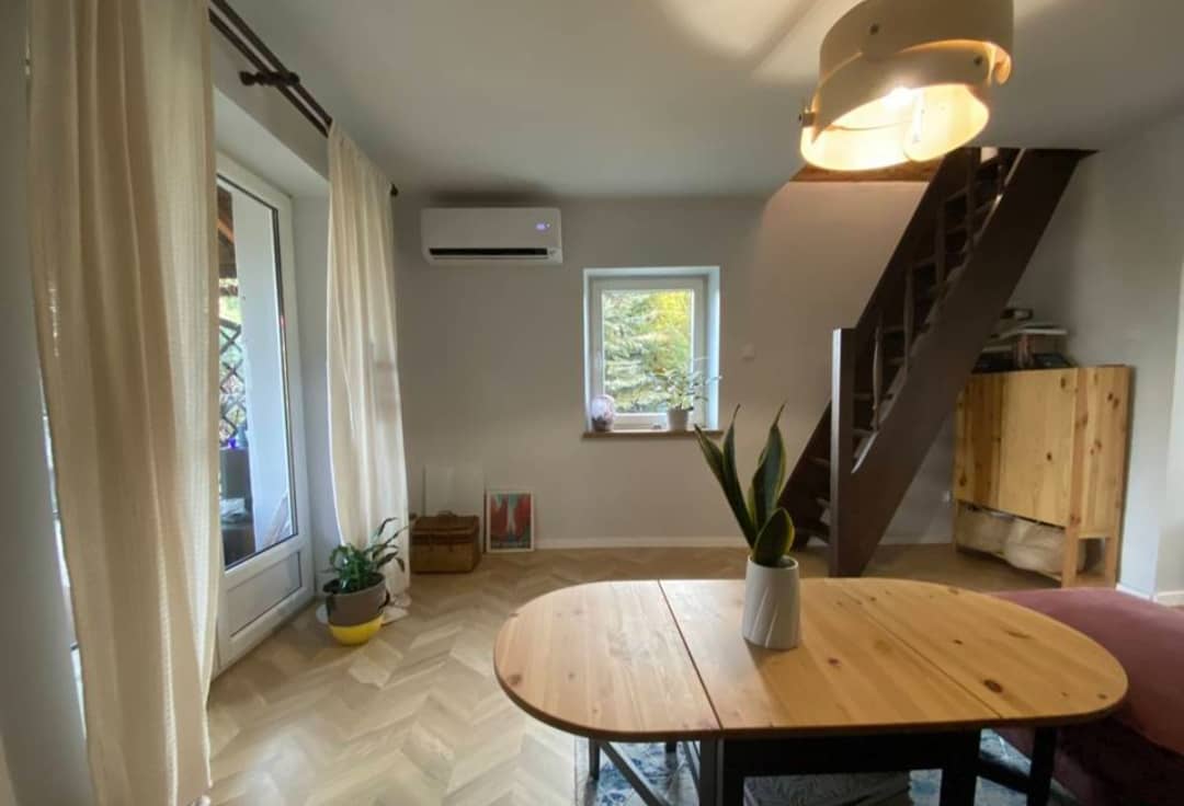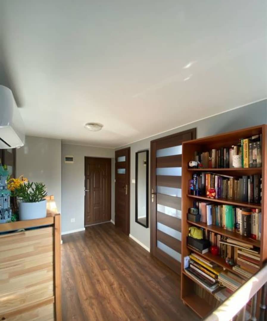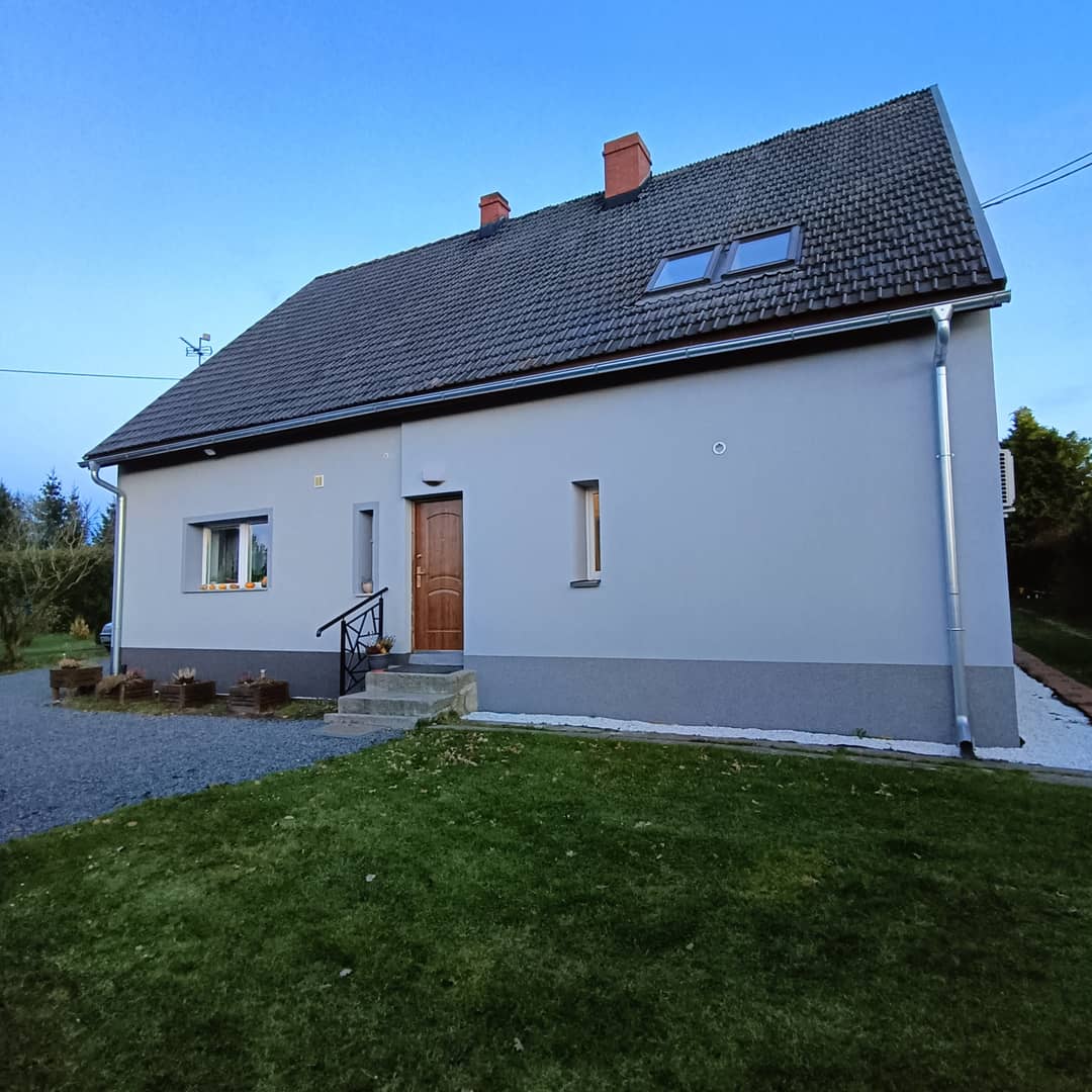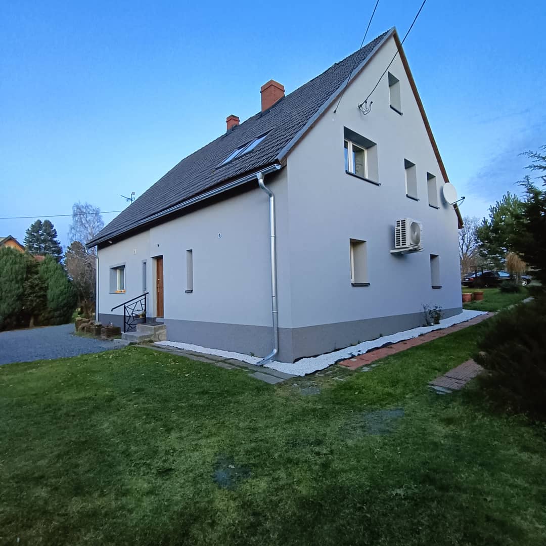 Połowa domu w podziale pionowym, po kapitalnym remoncie, w podgórskiej miejscowości Kostrzyca, w sercu Karkonoszy. Całość budynku posadowiona na działce 1600 m2 z czego 800 m2 przynależy do domu wraz z dodatkowo granicząca działka budowlana o powierzchni 500m2, co daje łącznie 1300 m2 ( możliwość zakupu nieruchomości osobno w odpowiednio ustalonej, niższej cenie). Powierzchnia całkowita wynosi 92 m2, która obejmuje na dwóch kondygnacjach w parterze wyposażoną i umeblowaną kuchnię, łazienkę z kabiną prysznicową i wc oraz salon z wyjściem na taras ( idealny pod szklaną zabudowę na oranżerie) skąd prowadzą drewniane schody na piętro gdzie znajduje się hol, sypialnia, pokój obecnie gabinet ( przepiękny widok bezpośrednio na Śnieżkę) druga łazienka z wanną oraz pralnia. Powyżej poddasze jako strych z możliwością adaptacji na dodatkowy pokój. Całość po kapitalnym remoncie, nowa stolarka okienna i drzwiowa, wymienione instalacje elektryczną, wodno - kanalizacyjną oraz grzewcza na wysokiej jakości klimatyzatory które świetnie się sprawdzają jako system ogrzewania, na parterze podłogowe. Budynek ocieplony 15 cm styropianem, wykonana elewacja. Dodatkowo przynależne 2 garaże i 2 komórki. Wspólny korytarz z przyjaznymi sąsiadami ( możliwość zrobienia osobnego wejścia od strony ogrodu) Całość do zamieszkania, bez dodatkowych nakładów finansowych. Piękna spokojna, zielona okolica, w miejscowości sklepy, markety, szkoła, przystanki komunikacji miejskiej, w sąsiedniej PKP. Odległość od pobliskiego Karpacza około 11 km, do Jeleniej Góry 15 km. Bardzo atrakcyjna oferta, cena 679 000 zł do negocjacji, serdecznie polecam i zapraszam na prezentację