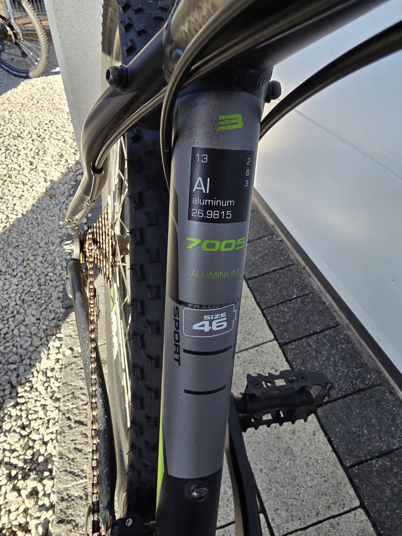 - rama aluminiowa , wytrzymała , rozmiar 18 cale ( 46 cm od suportu (pedał) do mocowania podsiodełkiem )