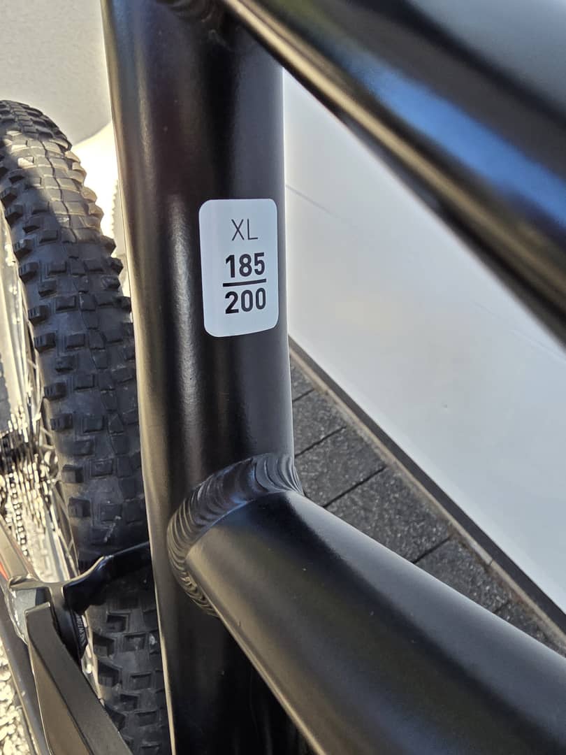 - rama aluminiowa , wytrzymała , rozmiar "XL" - z przeznaczeniem dla rowerzysty w przedziale wzrostu 185-200 ( 54 cm od suportu (pedał) do mocowania pod siodełkiem )
