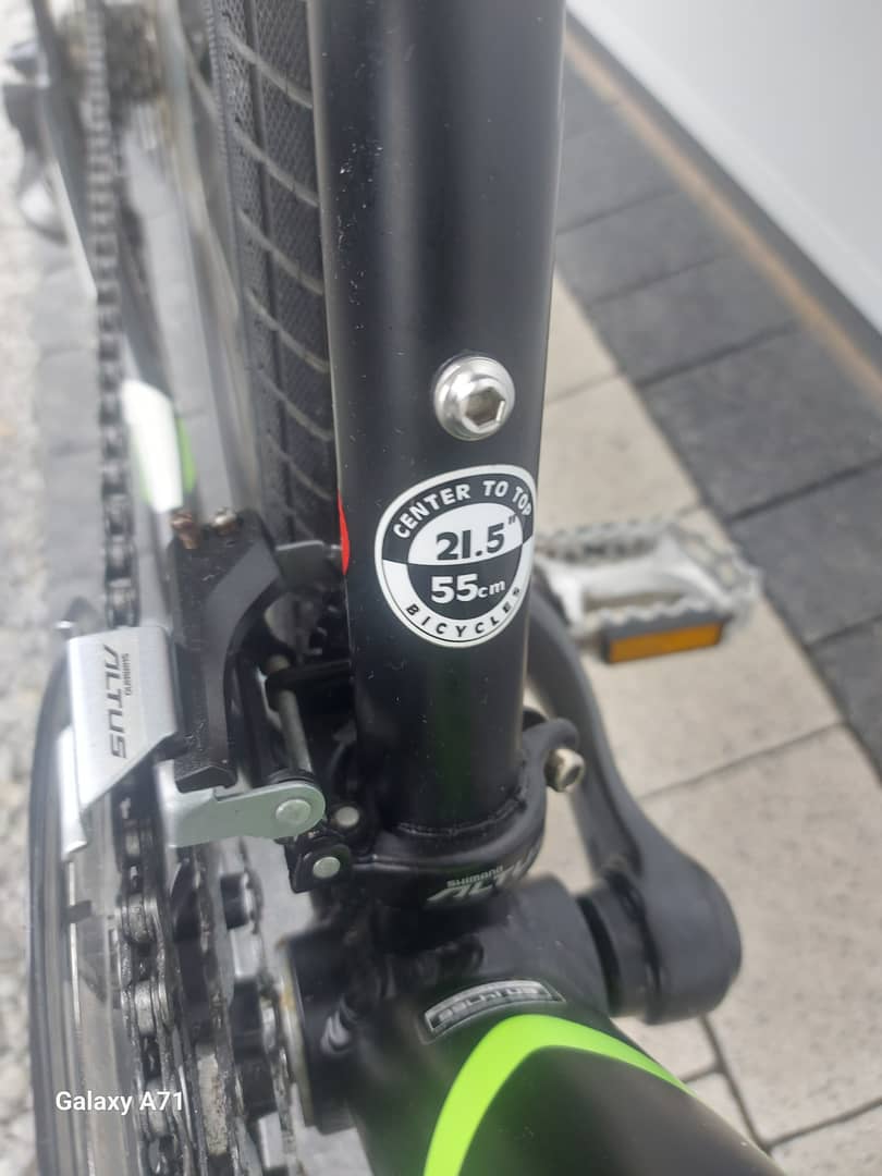 - rama aluminiowa , wytrzymała 21,5 cali ( 55 cm od suportu (pedał) do mocowania pod siodełkiem )