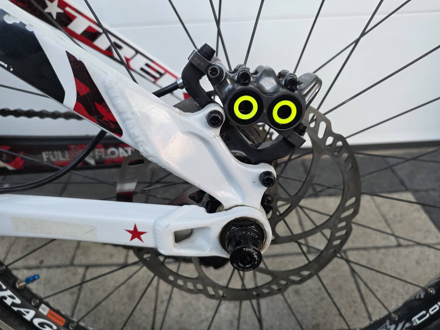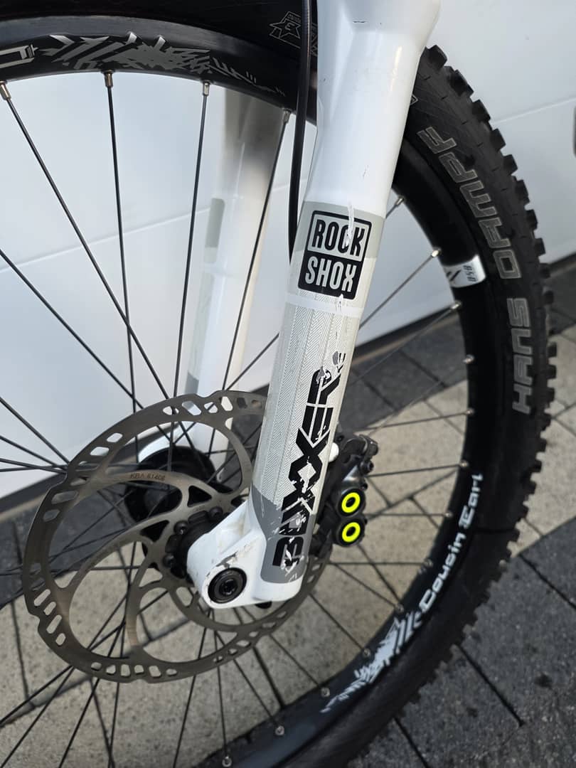 - amortyzator ROCKSHOX BOXXER na sztywnej piaście powietrzny , regulowany z blokadą skoku