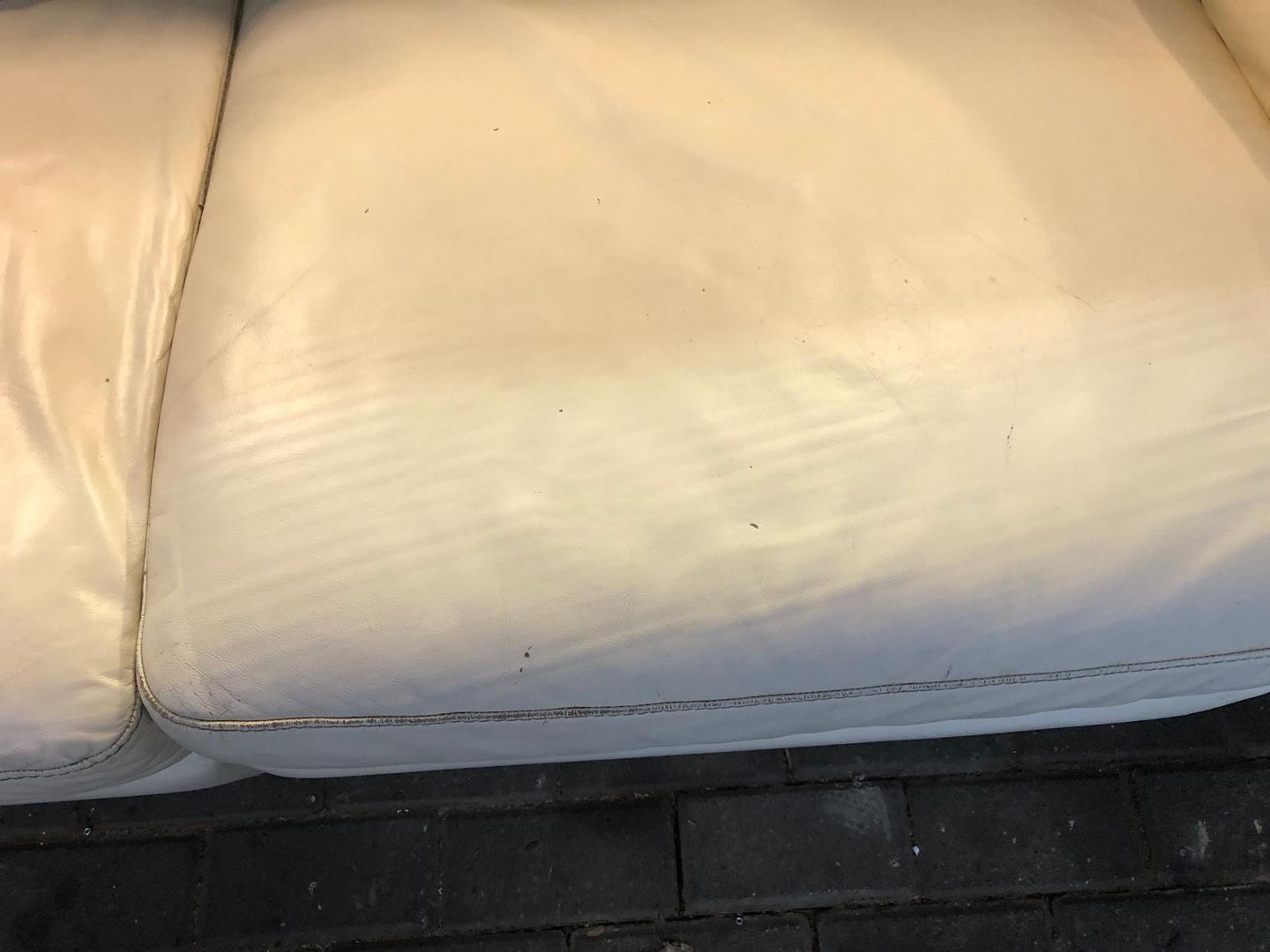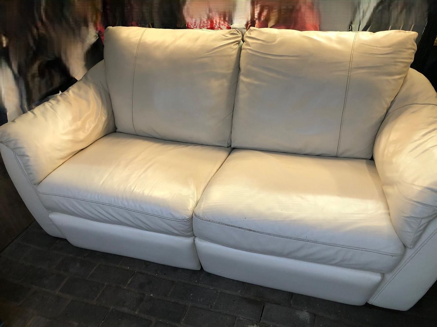Wygodna, skórzana sofa z funkcją relaksu, fotele rozkładane z wysuwanym podnóżkiem. Mebel wykonany ze skóry naturalnej lakierowanej (to nie materiał skóropodobny, skaj). Kanapa jest w stanie używanym, ale nadal zapewnia komfort i relaks. Idealna do salonu lub pokoju wypoczynkowego. Sofa posiada widoczne ślady użytkowania w postaci niewielkich przytarć na skórze. System relax mechaniczny, tył tapicerowany, sofa nie musi być ustawiona tyłem do ściany. . Wymiary: szer. 193 cm, wys. 88 cm, gł. 90 cm. Możliwy transport za dodatkową opłatą. Polecam