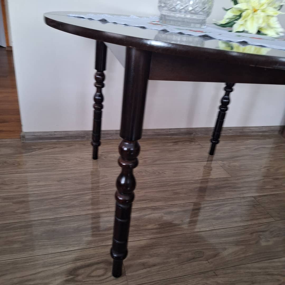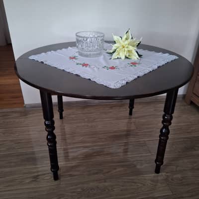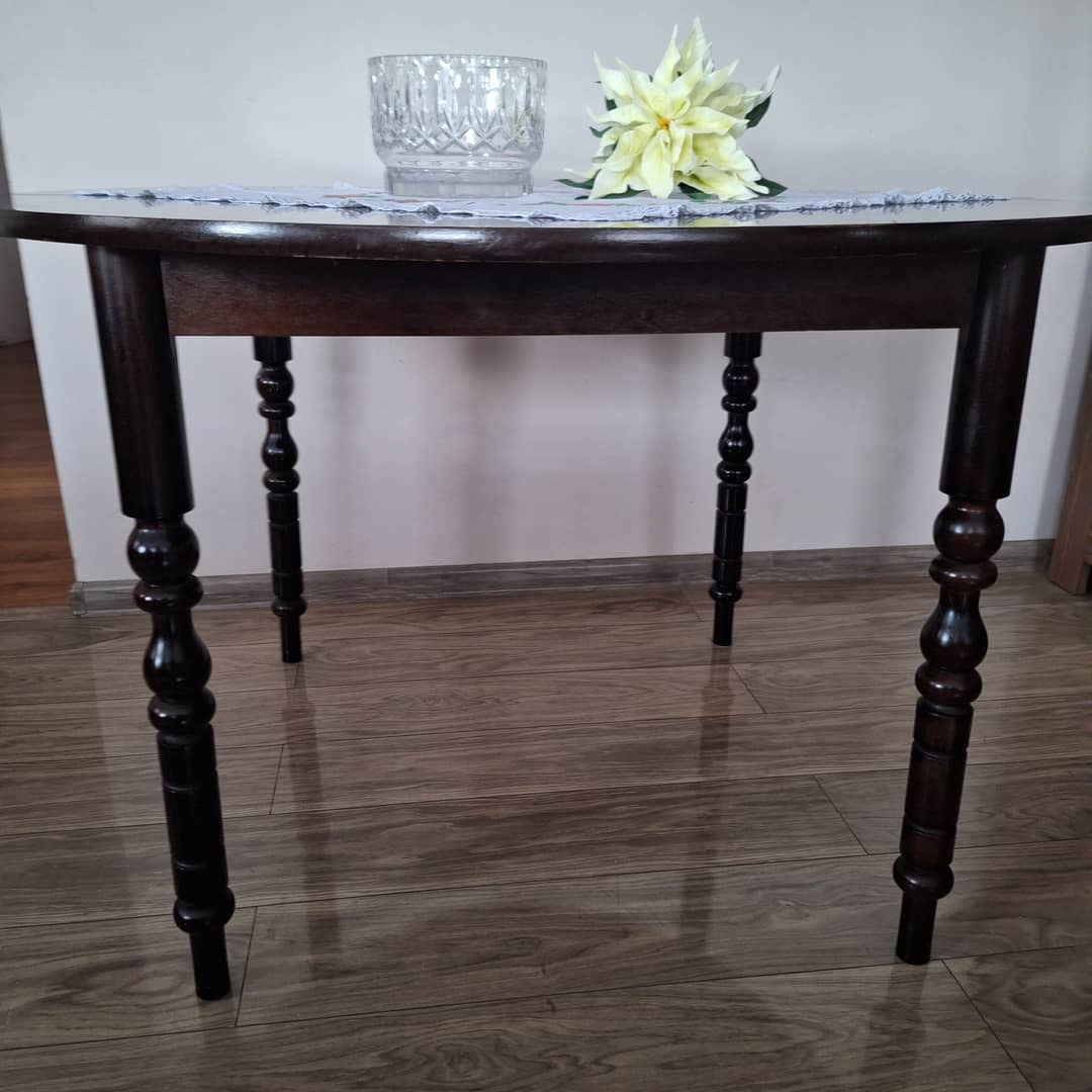 Stół drewniany nierozkładany, w dobrym stanie. Średnica 110 cm, wysokość 71 cm. Możliwy transport. Cena 300 zł.
