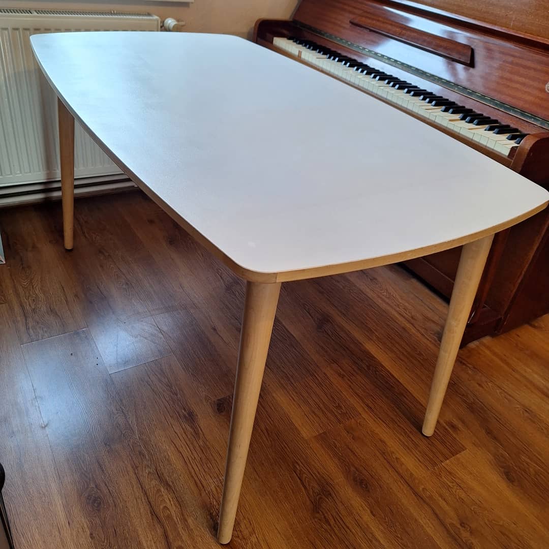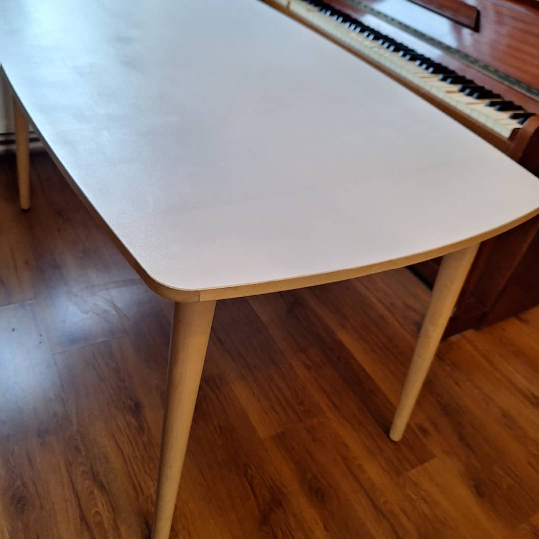 Stół z białym blatem , zaokrąglone rogi stołu , stan bardzo dobry . Wymiary długość 137 cm , szerokość 77 cm , wysokość 74 cm . Możliwy transport . Cena 250 zł.