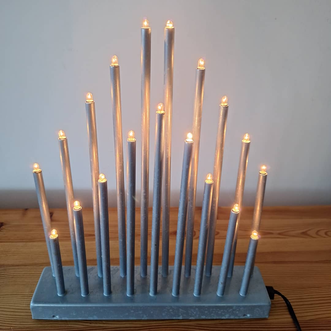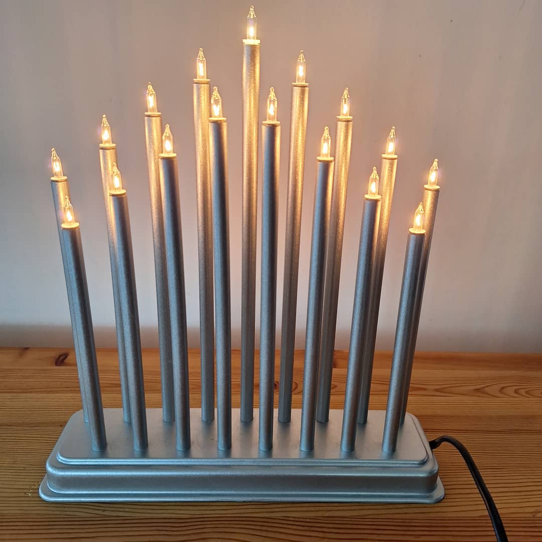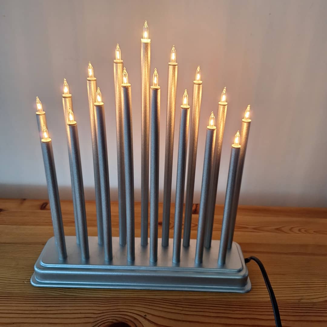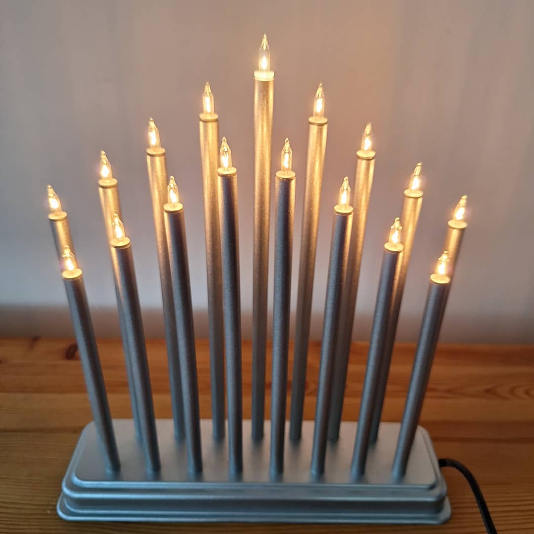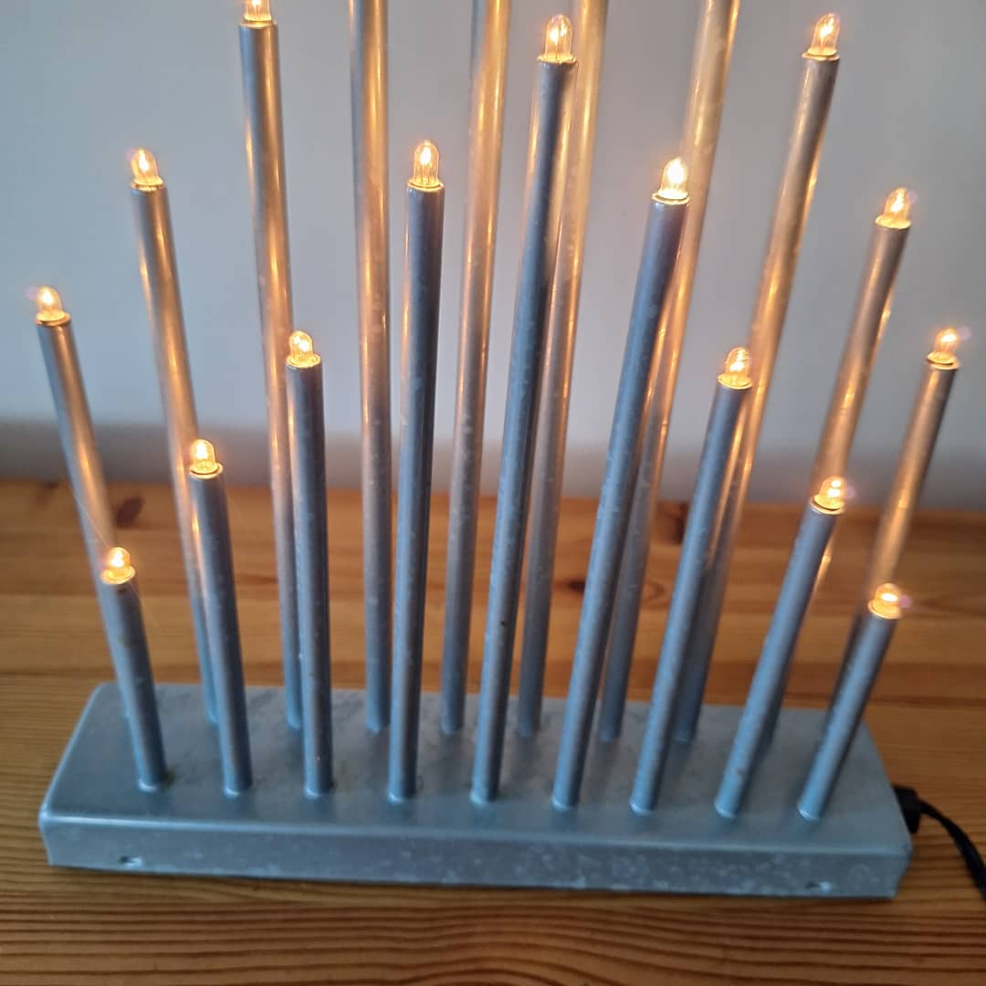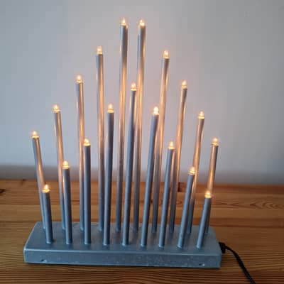 Świecznik adwentowy LED, popielaty z zasilaczem .Długość 26,5 cm, wysokość 30 cm.Możliwy dowóz lub wysyłka. Cena 100 zł.