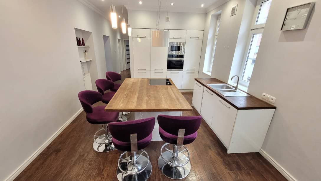 - w cenie pozostaje zabudowa kuchenna wraz ze sprzętem AGD: pralką, zmywarką, lodówką, kuchenka i piekarnikiem oraz różne stałe zabudowy widoczne na zdjęciach